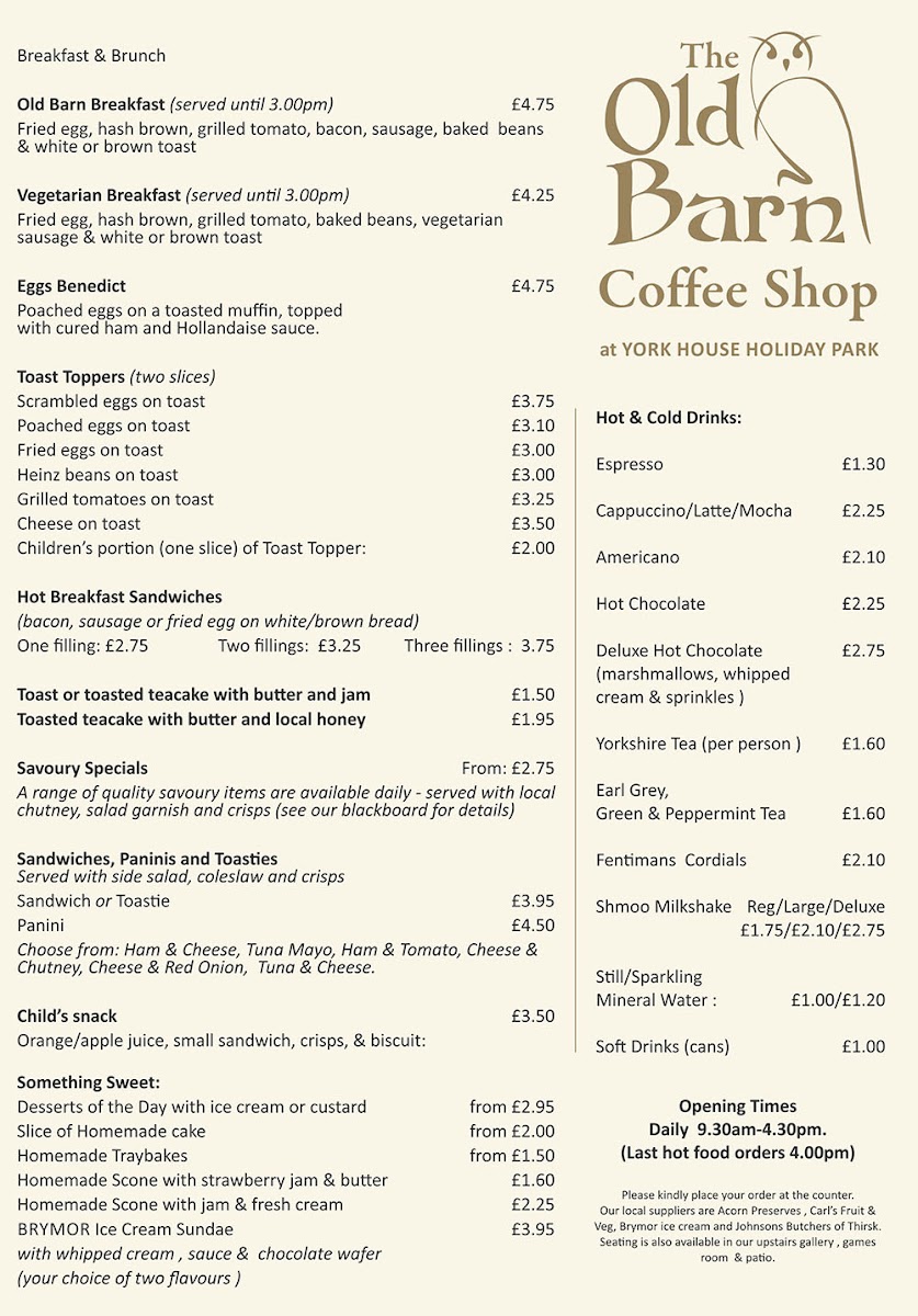 Welcome to Old Barn Coffee Shop, a charming retreat nestled in York House Holiday Park, Balk near Thirsk. This delightful spot is an ideal haven for cyclists, hikers, and food lovers alike. The welcoming atmosphere greets you as soon as you step through the doors, with friendly staff like Claudia, Katie, and Molly ensuring top-notch service.